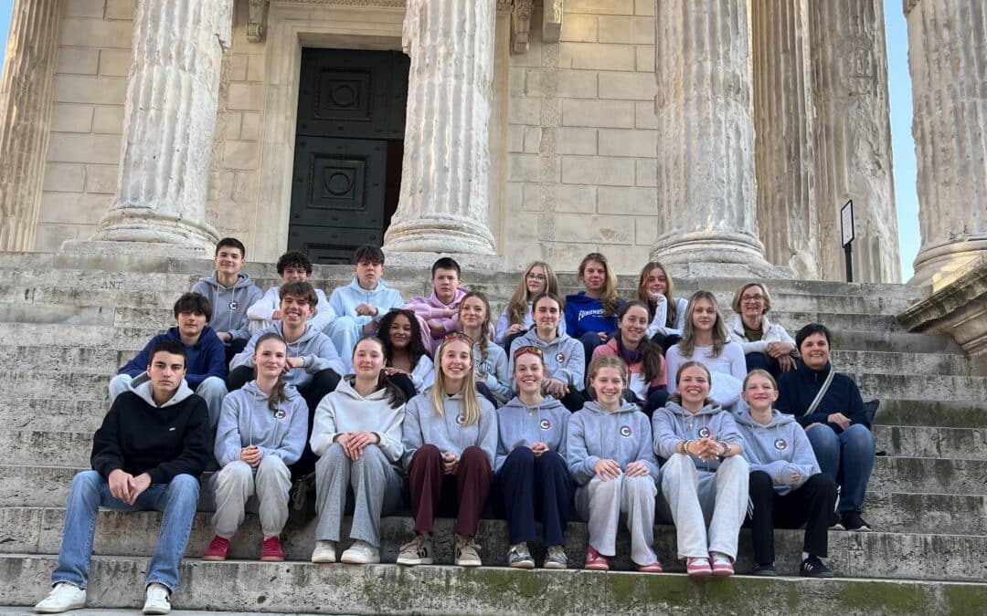 Am Donnerstagvormittag trafen sich deutsche und französische Schülerinnen und Schüler zum gemeinsamen Erasmus-Projekt. Unter dem Motto „Was uns verbindet“ erarbeiteten sie Gemeinsamkeiten deutscher und französischer Jugendlichen z.B. in den Bereichen Familie, Freunde, Digitalisierung und Umweltschutz. Am Nachmittag machte sich die Gruppe auf den Heimweg. Nach einer langen Fahrt mit einem Abstecher nach Nîmes, wo sie noch den römischen Tempel Maison Carrée und das Amphitheater entdecken konnten, kamen die Comenianer erschöpft, aber reich an neuen Erfahrungen und Eindrücken am Freitagmorgen am Comenius-Gymnasium an.