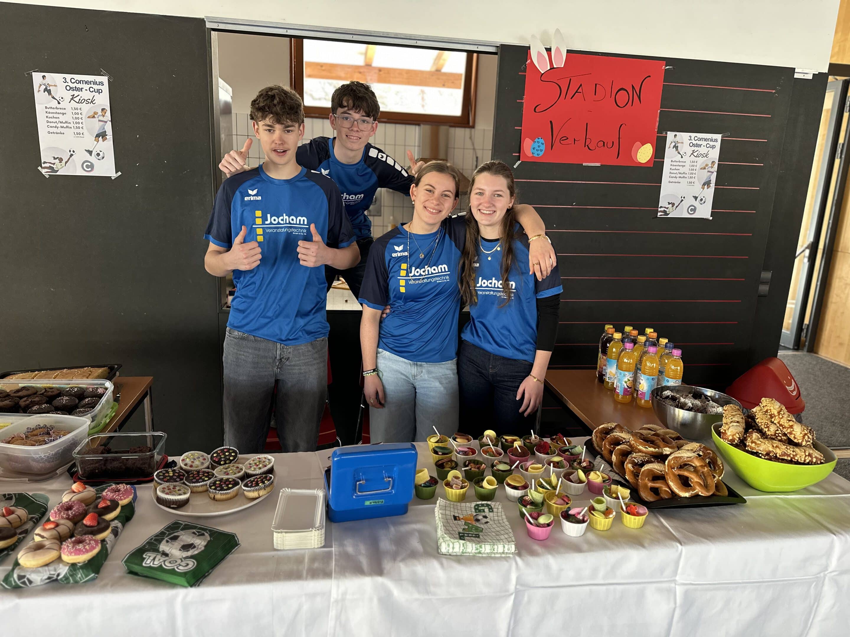 Am letzten Schultag vor den Osterferien stand am Comenius wieder alles im Zeichen „Fußball“: In der Comenius-Halle wurde für die Unterstufe der dritte Ostercup  ausgetragen. Pro Team durften bis zu 12 Spieler einer Klasse antreten, wobei stets mindestens ein Mädchen auf dem Platz sein musste. Gespielt wurde nach den offiziellen Futsal-Regeln. Auch ein „Stadionverkauf“ wurde erneut von Mädchen und Jungen der Fußball-Schulmannschaften organisiert und sorgte mit Getränken und süßen Snacks für das leibliche Wohl. Neu wurde in diesem Jahr eine „Quizecke“ eingerichtet, wo man sein Fußballwissen testen konnte.