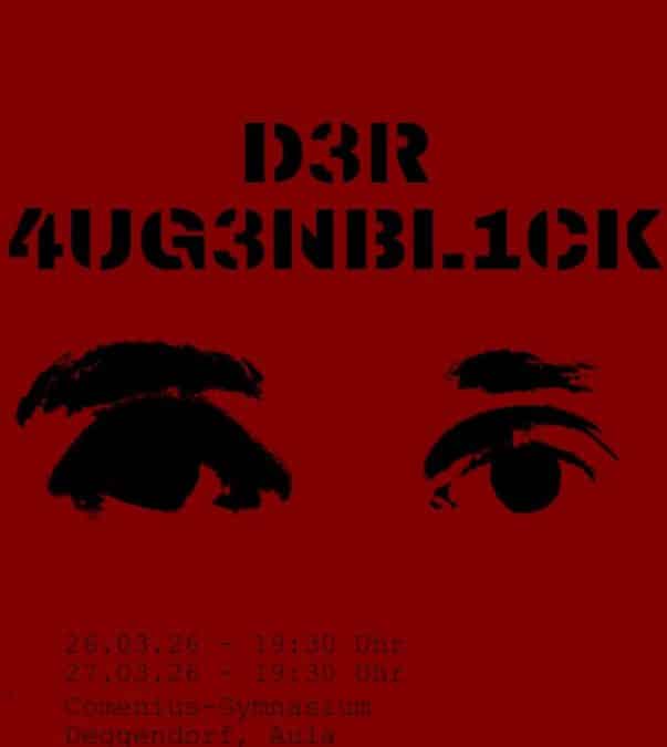 Das Comenius lädt Sie sehr herzlich ein zu den Aufführungen unseres gemeinsamen Oberstufentheaterprojekts des Robert-Koch-/Comenius-Gymnasiums. Unter der Leitung von Patrizia Gillner und Günther Zillner führen die jungen Theaterspielerinnen und -spieler dieses Jahr die Eigenproduktion „D3R 4UG3NBL1CK “, frei nach dem Drama „Die Befristeten“ von Elias Canetti auf.