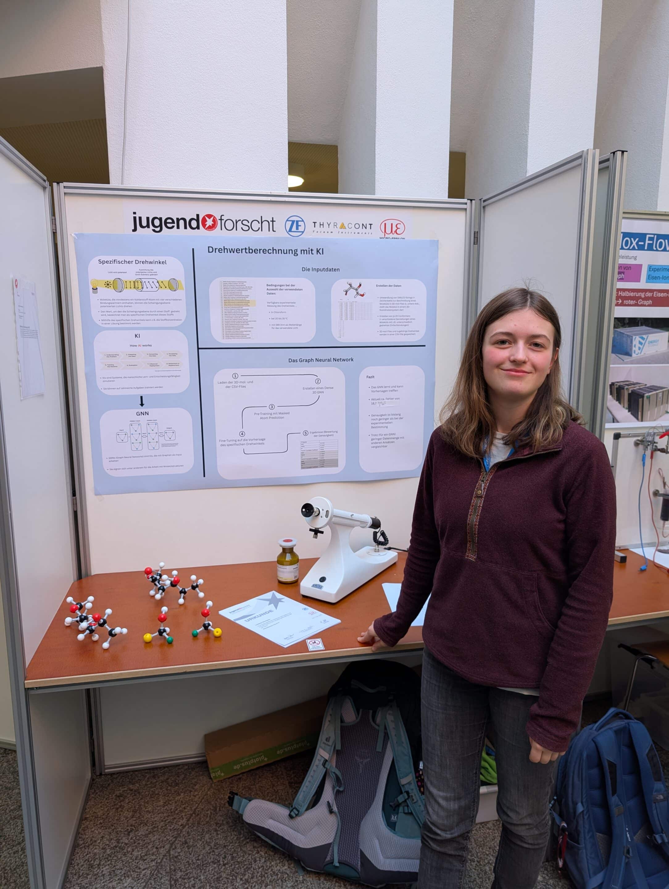 Auch Lucienne Hermisson erzielte einen herausragenden Erfolg. Sie entwickelte in eigener Programmierarbeit ein grafisches neuronales Netz, das anhand von dreidimensionalen Molekülstrukturen den Drehwinkel von polarisiertem Licht bei Bild-Spiegelbild-Molekülen vorhersagen kann. Diese fächerübergreifende Arbeit an der Schnittstelle von Chemie und Informatik brachte ihr den ersten Preis im Fachgebiet Informatik in der Sparte „Jugend forscht“ ein.