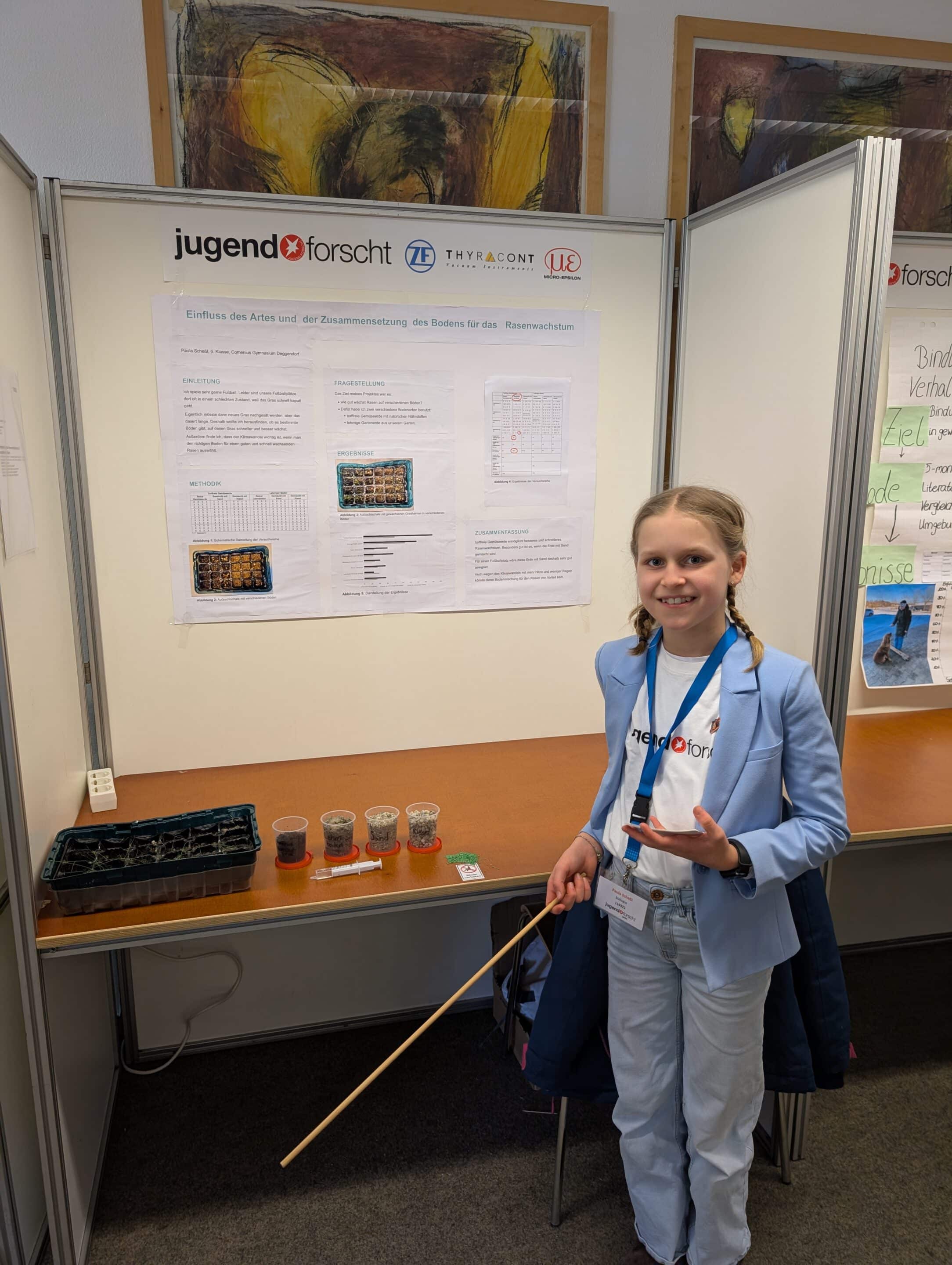 Einen zweiten Preis im Fachgebiet Biologie bei „Jugend forscht junior“ erhielt Paula Scheßl. In ihrem Projekt untersuchte sie das Wachstum von Gras und erforschte, wie sich dieses durch die gezielte Auswahl verschiedener Erdsorten positiv beeinflussen lässt.