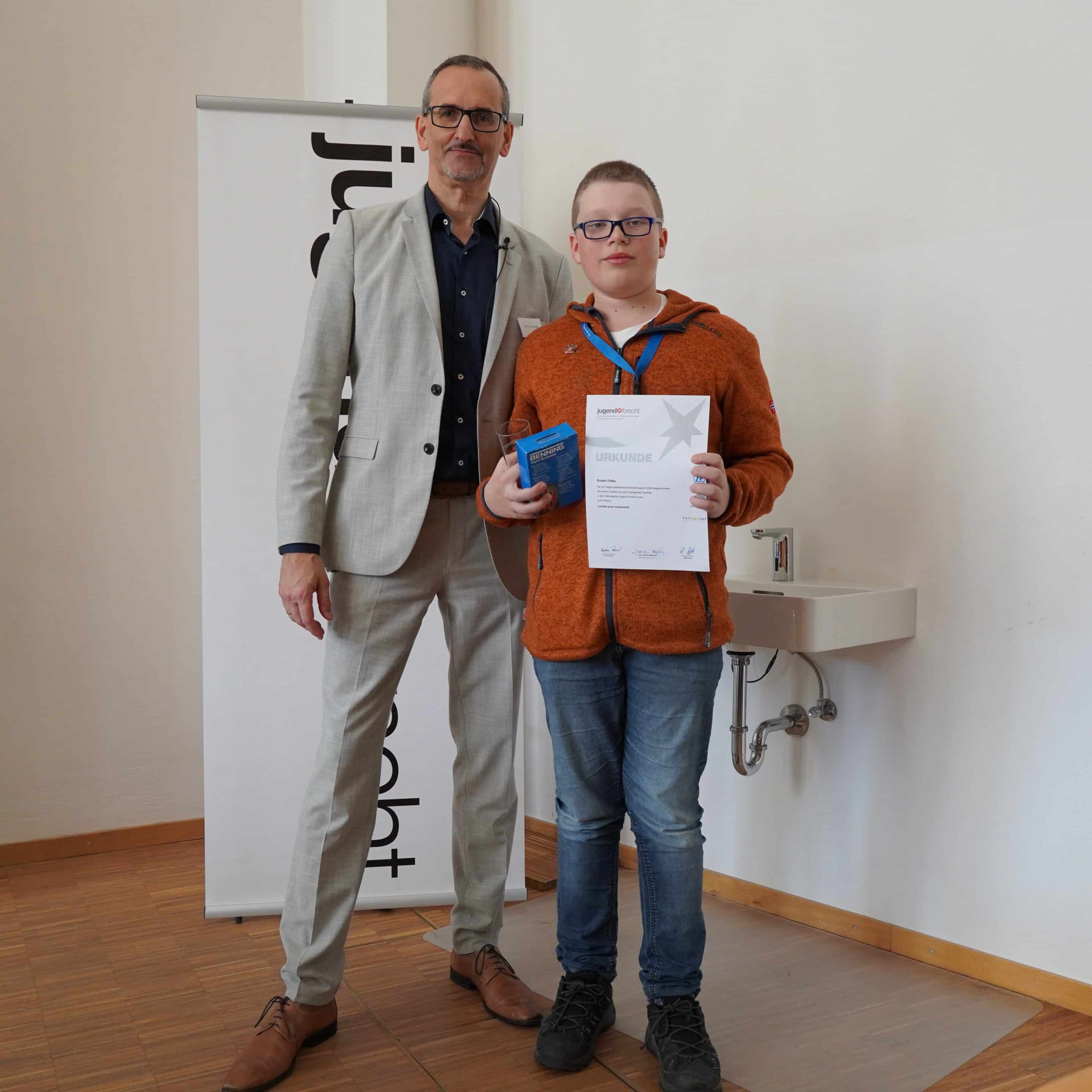 Für das Comenius-Gymnasium war der Wettbewerb auch quantitativ ein besonderer Erfolg: Mit insgesamt zehn vorgestellten Projekten stellte die Schule so viele Beiträge wie noch nie zuvor. Doch nicht nur die Zahl der Arbeiten war beeindruckend – auch qualitativ konnten die jungen Forschenden überzeugen. Am Ende durfte sich die Schule über vier Projektpreise freuen. Zusätzlich wurde das Comenius-Gymnasium mit einem Schulpreis für die besondere Förderung des wissenschaftlichen Nachwuchses ausgezeichnet – eine Anerkennung für das langjährige erfolgreiche Engagement der Schule bei „Jugend forscht“.