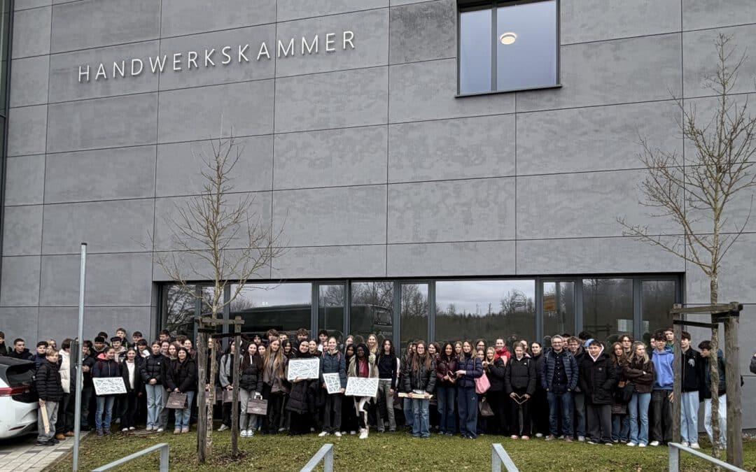 Alle 9. Klassen des Comenius-Gymnasiums Deggendorf nahmen gemeinsam mit ihren Lehrkräften Herrn Fuchs und Herrn Birkmann am Tag des Handwerks in der Handwerkskammer Passau teil. Die Anreise erfolgte am Morgen mit dem Bus von Deggendorf nach Passau. Vor Ort erhielten die Schülerinnen und Schüler die Gelegenheit, die Vielfalt handwerklicher Berufe kennenzulernen und praktische Einblicke in unterschiedliche Arbeitsbereiche zu gewinnen.