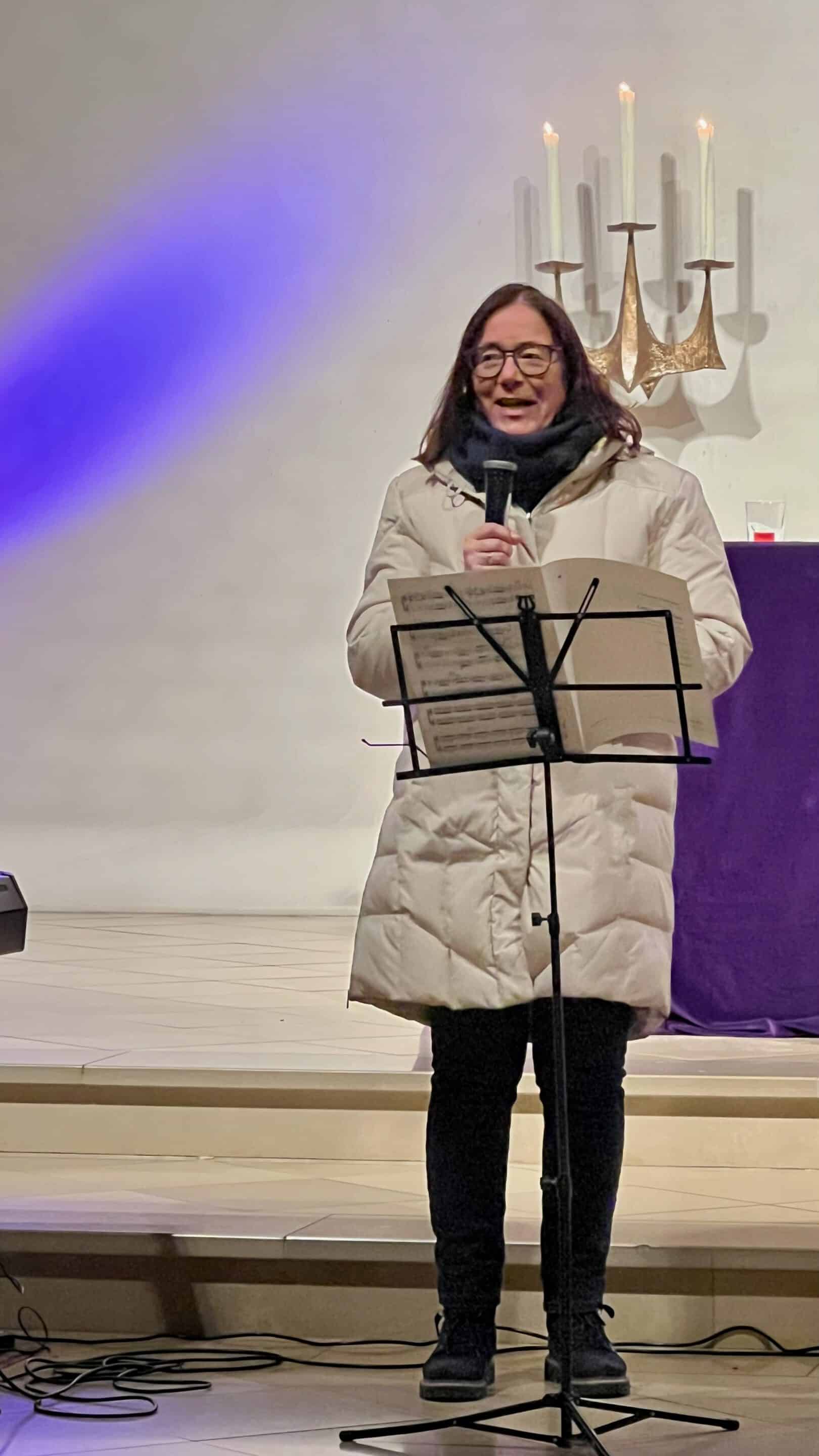 Herbert Hutterer begrüßte vor dem letzten Programmblock Birgit Gegenfurtner vom Verein „Lichtblick Seniorenhilfe“ aus Deggendorf. Sie erläuterte den Konzertbesuchern die ehrenamtliche Arbeit des Vereins, der sich primär um Hilfe bei Altersarbeit kümmert und der für ganz Niederbayern zuständig ist. Im Voraus bedankte sie sich ganz herzlich dafür, dass die Sängerinnen und Sänger des Chors die Konzertspenden dem Verein zukommen lassen.